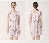 Blommigt tryck siden nattklänning för kvinnor lösa siden nattdress - Rosa