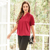 Kvinnors sidenblus röd siden blus silkes kort ärm skjorta v hals silkeskjorta - Rödvin
