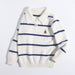 Barn randig kashmir tröja polo nacke broderad björnmors tröja Barn randig kashmir tröja polo nacke broderad björnmors tröja