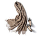Denna lyxiga kashmirhalsduk har en tidlös, ren design med fransade kanter för en touch av elegans. Mjuk och lätt, den erbjuder värme och komfort utan att vara klumpig. Den generösa längden möjliggör mångsidig styling, oavsett om den viras runt halsen för extra värme eller draperas över axlarna. Perfekt för både vardagliga och formella tillfällen, denna halsduk är ett mångsidigt accessoar som ger en elegant touch till vilken outfit som helst.