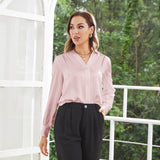 Förfina din garderob med denna lyxiga sidenblus, designad för elegans och mångsidighet. Tillverkad av 100 % siden, har denna button-down-skjorta en elegant V-ringning och en avslappnad passform, vilket ger ett smickrande fall och en avslappnad charm. De långa ärmarna med knäppta manschetter ger en touch av sofistikering, vilket gör den perfekt för både kontorskläder och kvällsutflykter.