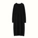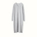 Med en smickrande V-ringning och långa, åtsittande ärmar erbjuder denna klänning en tidlös silhuett som är perfekt för alla tillfällen. Det mjuka stickade tyget ger värme och en lyxig känsla, medan midilängden ger en touch av sofistikering. Den raka designen garanterar en bekväm men ändå elegant passform, vilket gör den idealisk för både avslappnade utflykter och formella sammankomster.
