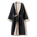 Svep in dig i tidlös elegans med denna dubbelsidiga kashmirkappa i kofta, designad för både komfort och sofistikering. Med en kontrasterande beige kant mot en fyllig brun bas, ger detta långa plagg din garderob en enkel lager-på-lager-klädsel. Det självknytande skärpet knyter midjan åt för en smickrande silhuett, medan den öppna designen erbjuder mångsidig styling.